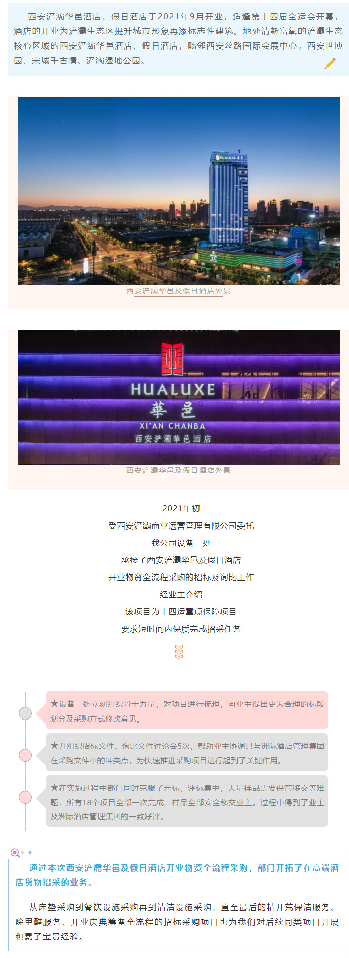 業(yè)務再拓展!西安浐灞華邑及假日酒店開業(yè)物資全流程采購