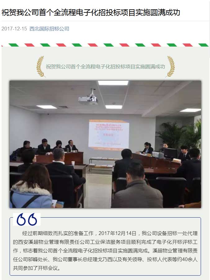 祝賀我公司首個(gè)全流程電子化招投標(biāo)項(xiàng)目實(shí)施圓滿成功