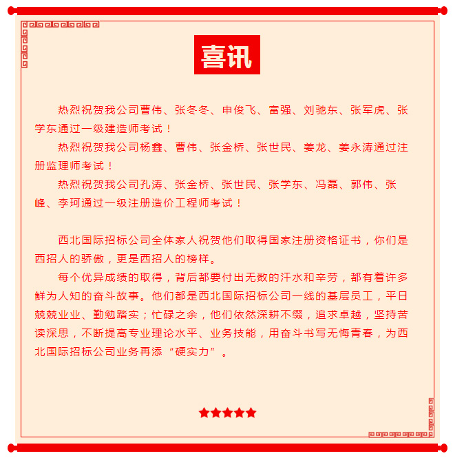 實力上榜——恭喜西北國際招標公司17人獲得國家注冊執(zhí)業(yè)資格