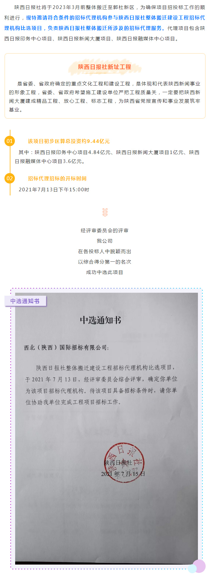 我公司成功中選陜西日報社整體搬遷建設(shè)工程項目