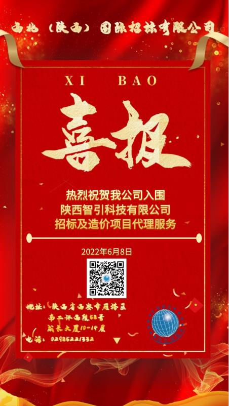 熱烈祝賀我公司入圍“陜西智引科技有限公司招標(biāo)及造價項(xiàng)目”代理服務(wù)