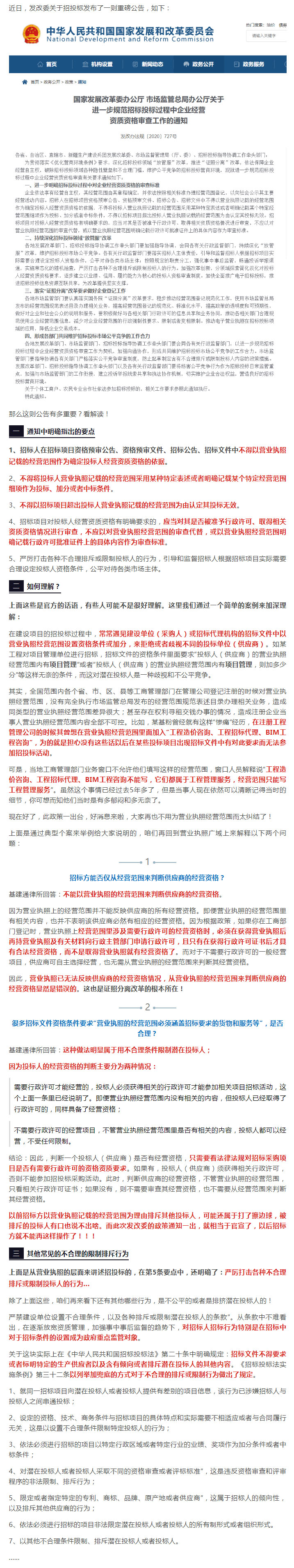 發(fā)改委發(fā)布關(guān)于進(jìn)一步規(guī)范招標(biāo)投標(biāo)過程中企業(yè)經(jīng)營資質(zhì)資格審查工作的通知